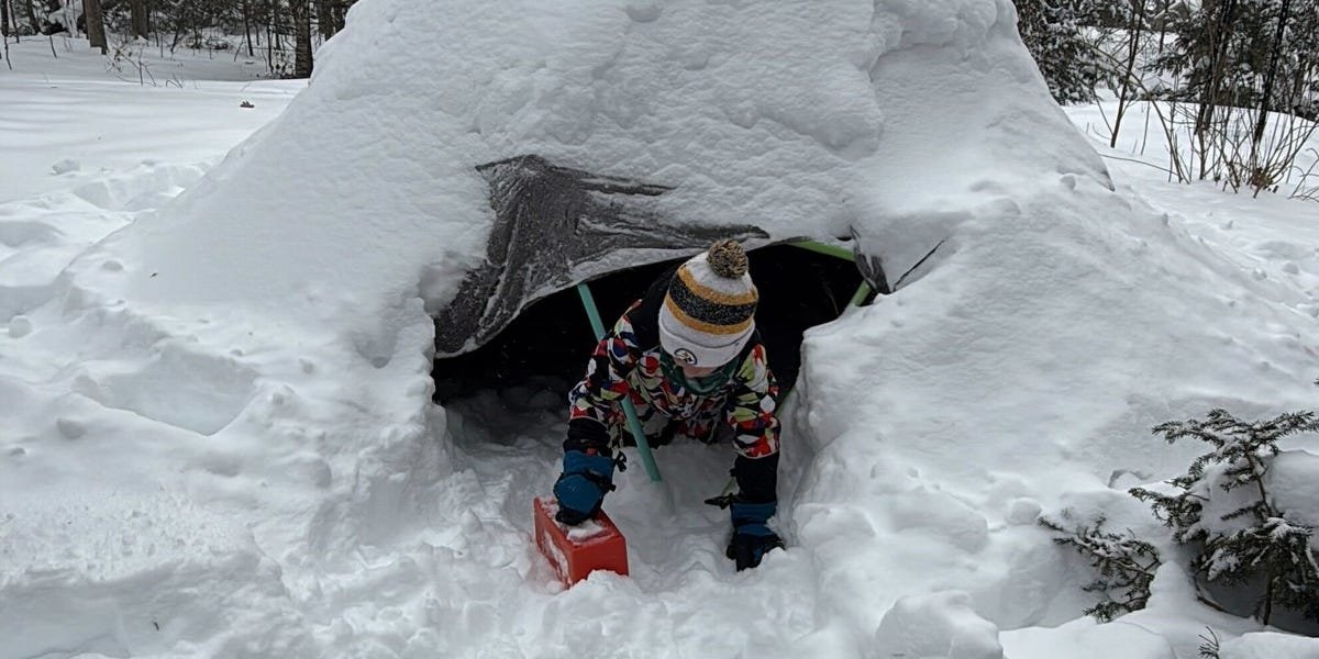 On Sunday, while preparing for the massive snowstorm that was headed toward Maine, Instagram fed me a reel of a couple building an igloo with the same climbing structure we have. I sent it to my husband, who came running from the room next door and said, “We have to do this!”